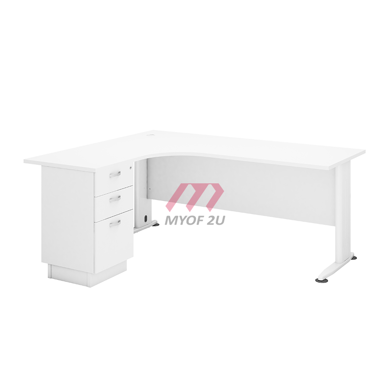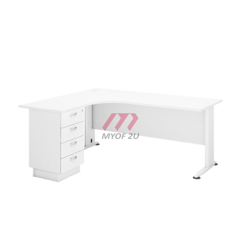 MY-HL – 3D Executive L-Shape Table with J Metal (White)