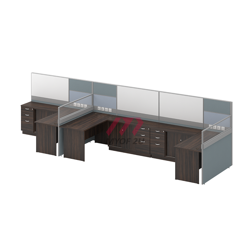 We offer a practical and space-saving Cluster of 3 Workstations, ideal for small teams or triple-user setups. Designed with functionality in mind, this three-user configuration features sturdy tabletops, optional modesty panels, and cable management solutions. Suitable for corporate offices, co-working spaces, or government agencies. Customizable in color and material to match your workspace aesthetics.