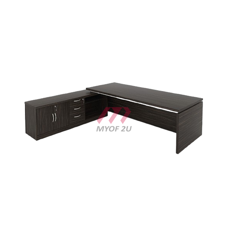 Product : Executive Director Table With Side Cabinet Open Shelves + Swing Door + 3D Pedestal